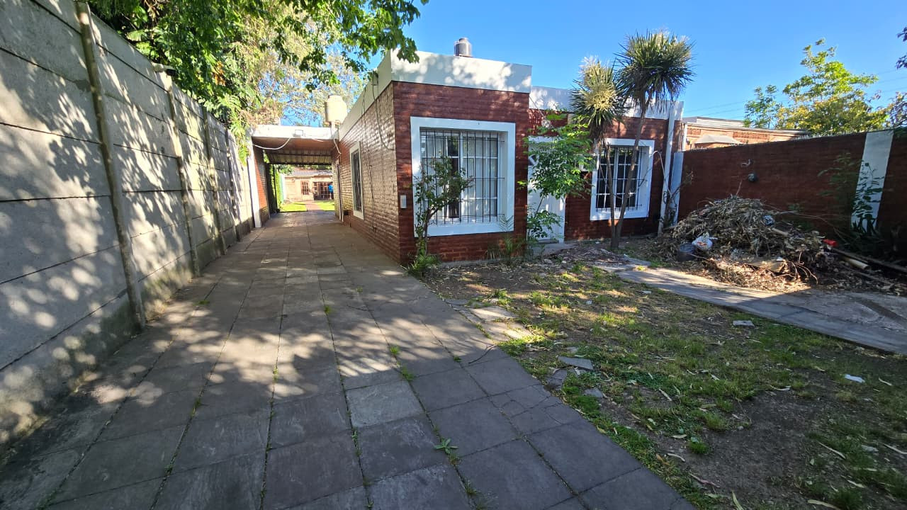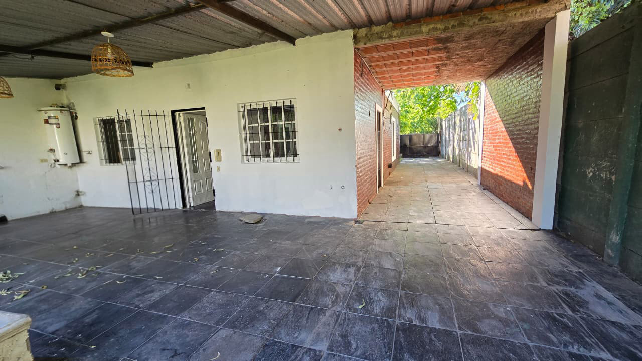 Al ingresar a la propiedad, se encuentra un frente completamente cercado con reja de 2 m de altura y portón corredizo. Cuenta con cochera pasante con espacio vehicular cubierto para dos autos.