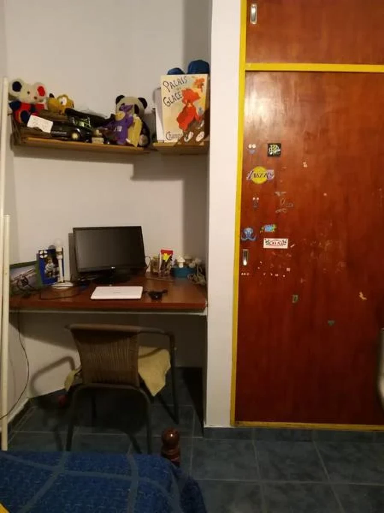 UN DORMITORIO CON PLACARD Y BAÑO