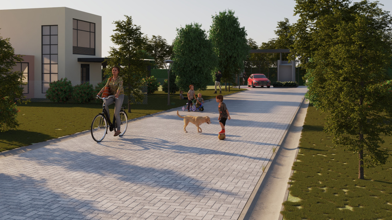 La calle interna que conecta todos los lotes será de pavimento intertrabado, con